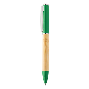Kuličkové pero z bambusu a recyklovaného ABS plastu s 1 LED svítilnou. S modrou náplní a knoflíkovou baterií.