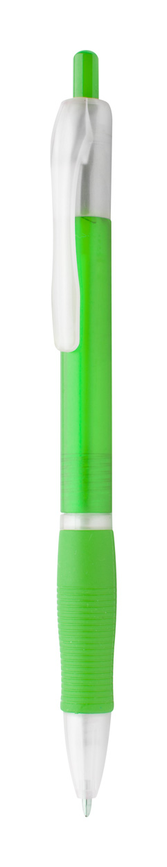 Plastové kuličkové pero s pogumovaným gripem a s modrou náplní.