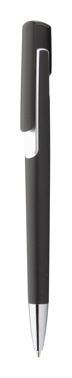 Plastové kuličkové pero s barevným zdobením a chromovaným hrotem. S modrou náplní.