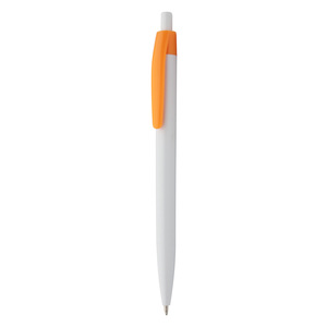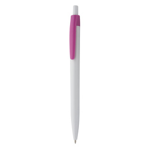 Plastové kuličkové pero s bílým tělem a barevným klipem, s modrou náplní.