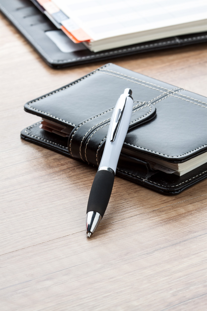 Plastové kuličkové pero s bílým tělem, barevným úchopem a lesklými chromovanými částmi. S modrou náplní.