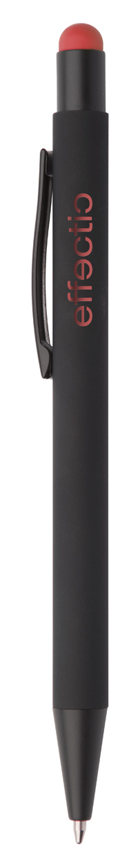 Hliníkové kuličkové a dotykové pero s pogumovanou úpravou a speciálním povrchem pro zrcadlový laser v barvě stylusu, s modrou náplní.