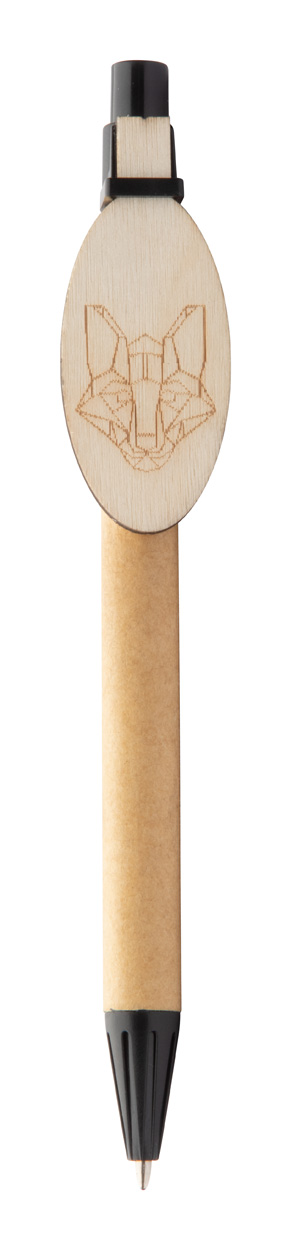 Recyklovatelné kuličkové pero s dřevěným klipem na zakázku a modrou náplní. Klip může být vyroben dle vlastního tvaru – maximální rozměr je 25×35 mm. Cena zahrnuje logo laserem, nezahrnuje tiskovou přípravu. Min. mn.: 100 ks.