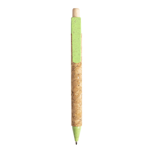 Ekologické plastové kuličkové pero ze slámy s přírodním korkem na těle a modrou náplní.