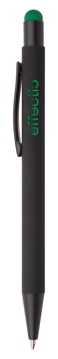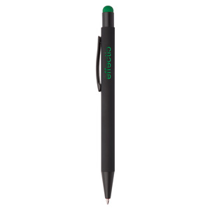 Hliníkové kuličkové a dotykové pero s pogumovanou úpravou a speciálním povrchem pro zrcadlový laser v barvě stylusu, s modrou náplní.