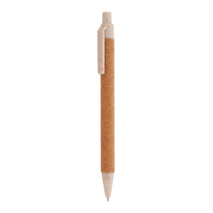 Kuličkové pero potažené přírodním korkem z ekologického plastu z pšeničné slámy. S modrou náplní.