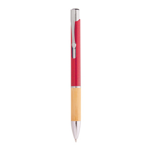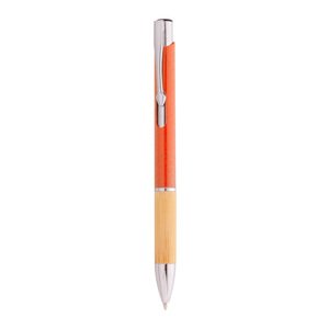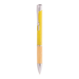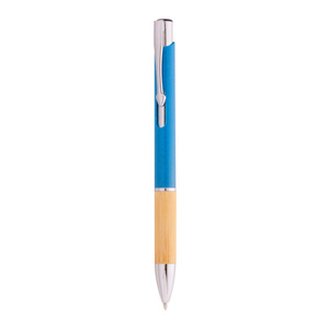 Ekologické plastové kuličkové pero z pšeničné slámy s bambusovým úchopem a kovovými částmi. S modrou náplní.