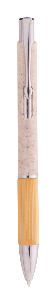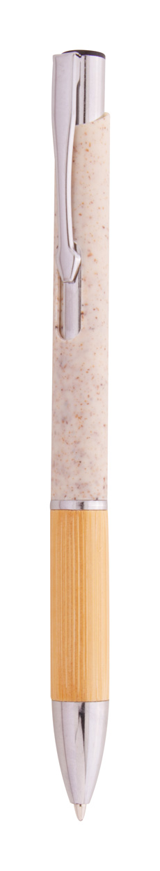 Ekologické plastové kuličkové pero z pšeničné slámy s bambusovým úchopem a kovovými částmi. S modrou náplní.