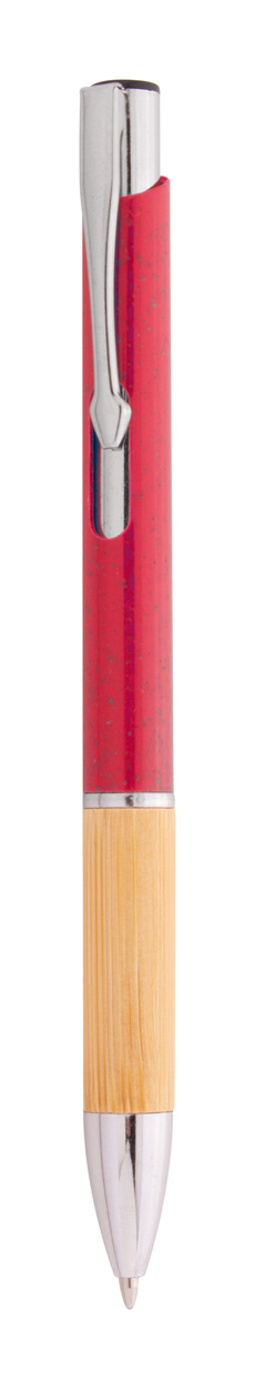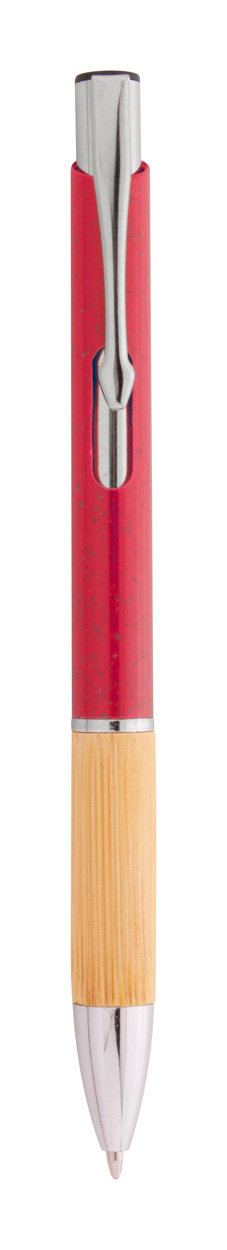 Ekologické plastové kuličkové pero z pšeničné slámy s bambusovým úchopem a kovovými částmi. S modrou náplní.