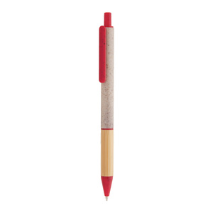 Ekologické plastové kuličkové pero z pšeničné slámy s bambusovým úchopem a barevnými částmi. S modrou náplní.