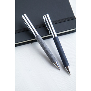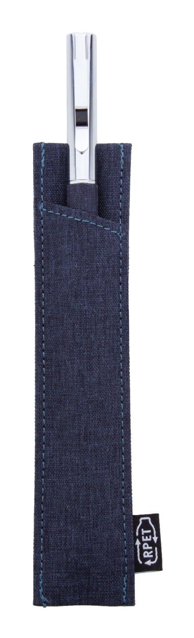 Kovové kuličkové pero s twist otočným mechanismem potažené polyesterem RPET. V odpovídajícím polyesterovém pouzdře RPET. S modrou náplní.