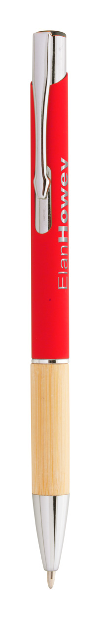 Hliníkové kuličkové pero s bambusovým úchopem, pogumovaným povrchem a modrou náplní. Se speciální vrstvou pro zrcadlové laserové gravírování.