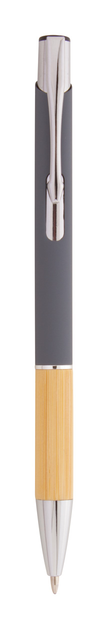 Hliníkové kuličkové pero s bambusovým úchopem, pogumovaným povrchem a modrou náplní. Se speciální vrstvou pro zrcadlové laserové gravírování.