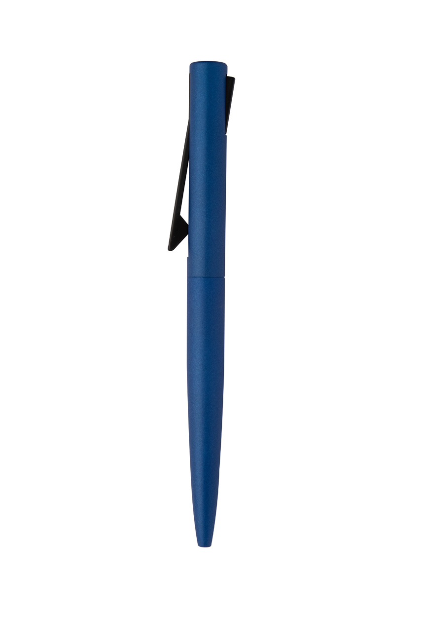 Kuličkové pero z recyklovaného hliníku v matné metalické barvě s horní částí z recyklovaného ABS a speciálním klipem. S modrou náplní.