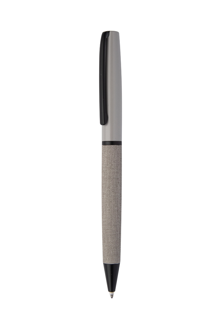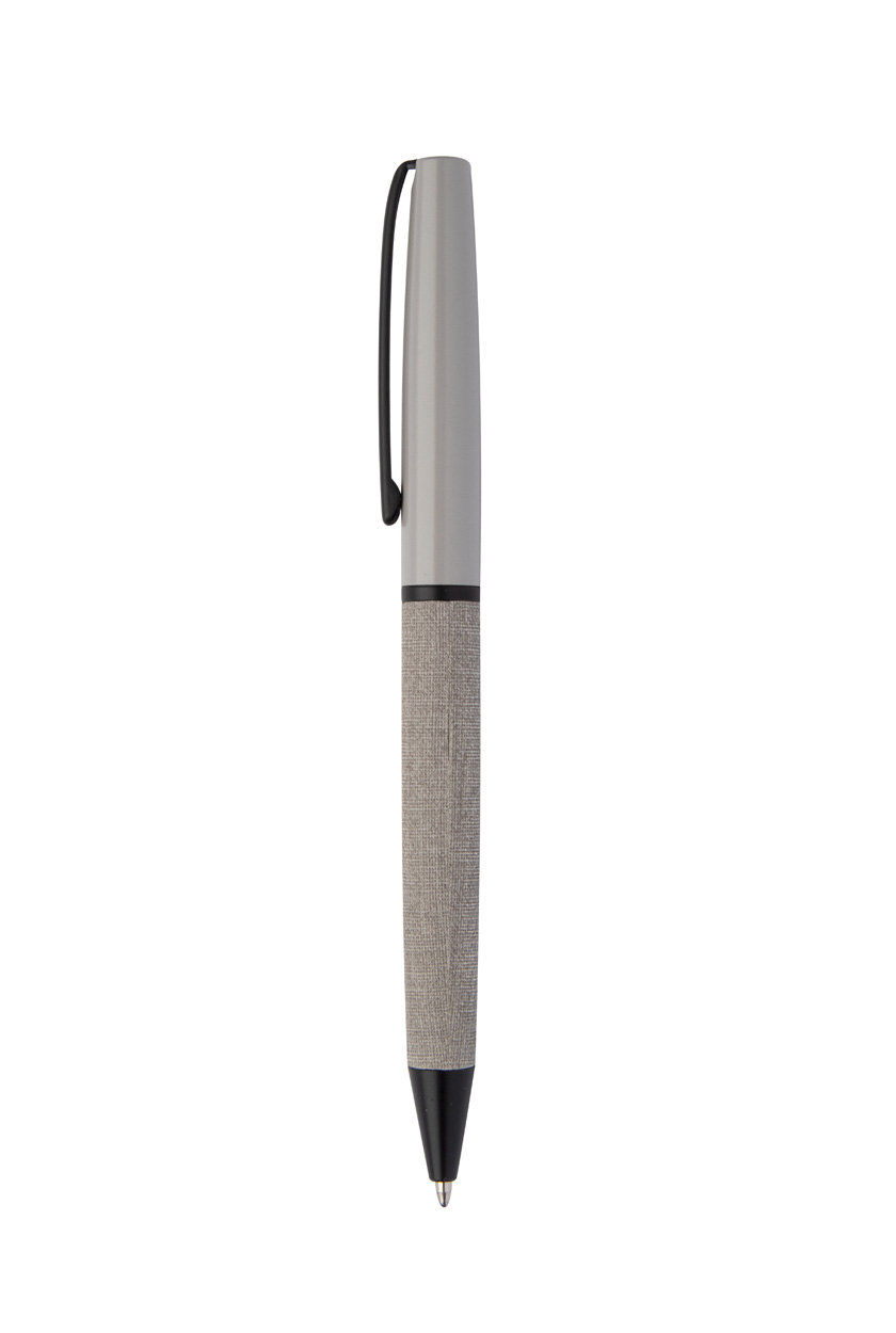 Elegantní kovové kuličkové pero s tělem potaženým PU kůží a černými částmi. V černé dárkové krabičce. S modrou náplní.