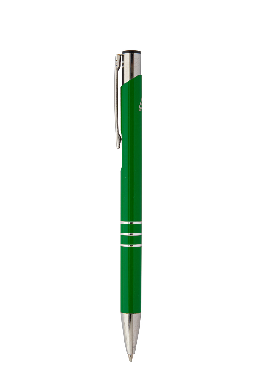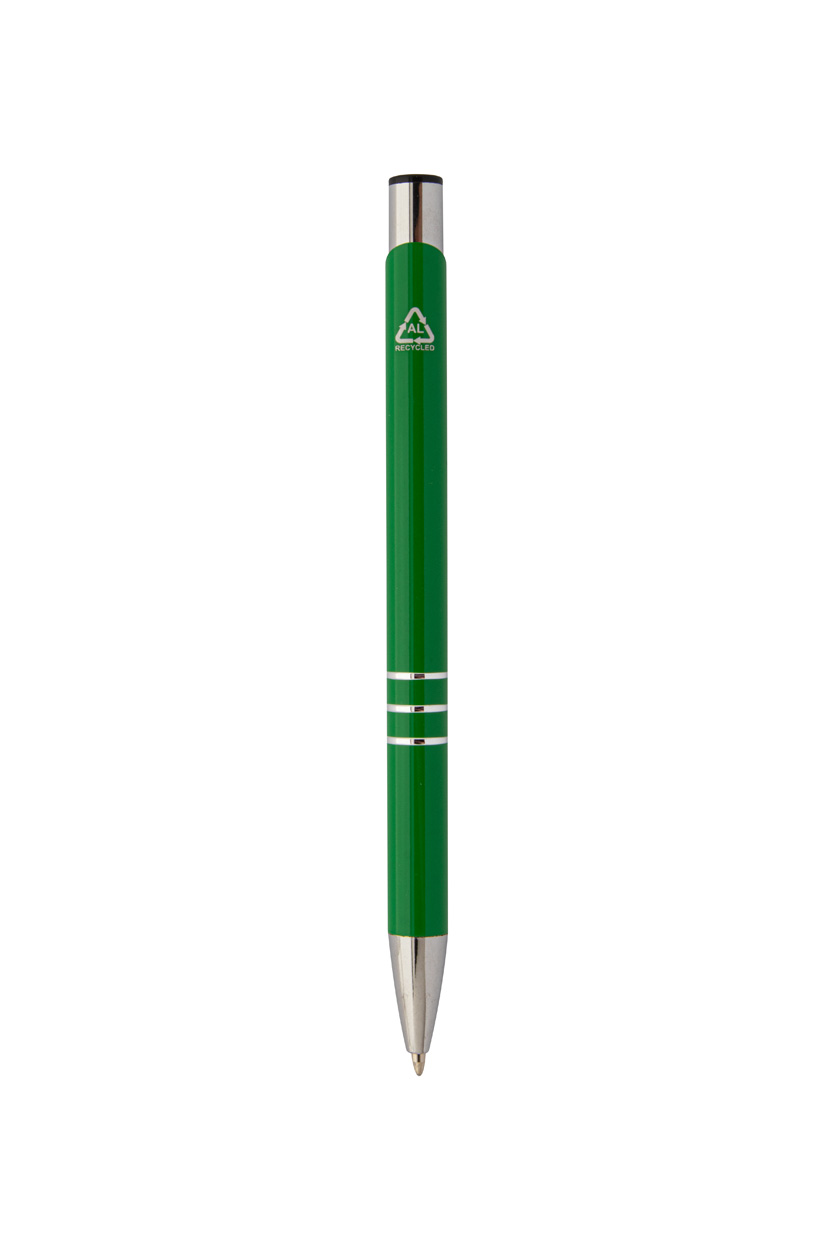 Kuličkové pero z recyklovaného hliníku s modrou náplní.