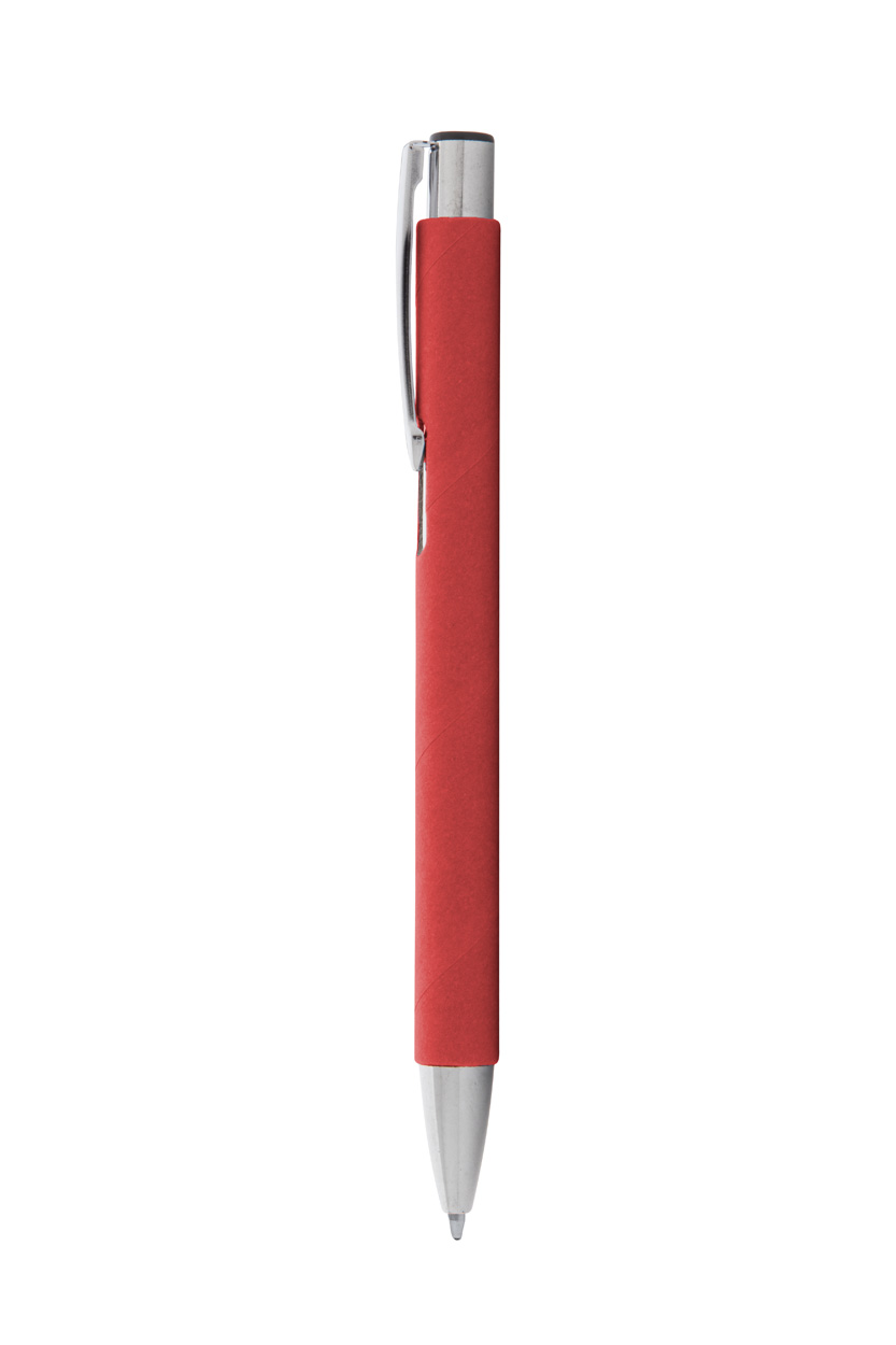 Kuličkové pero z recyklovaného papíru s kovovými částmi. S modrou náplní.