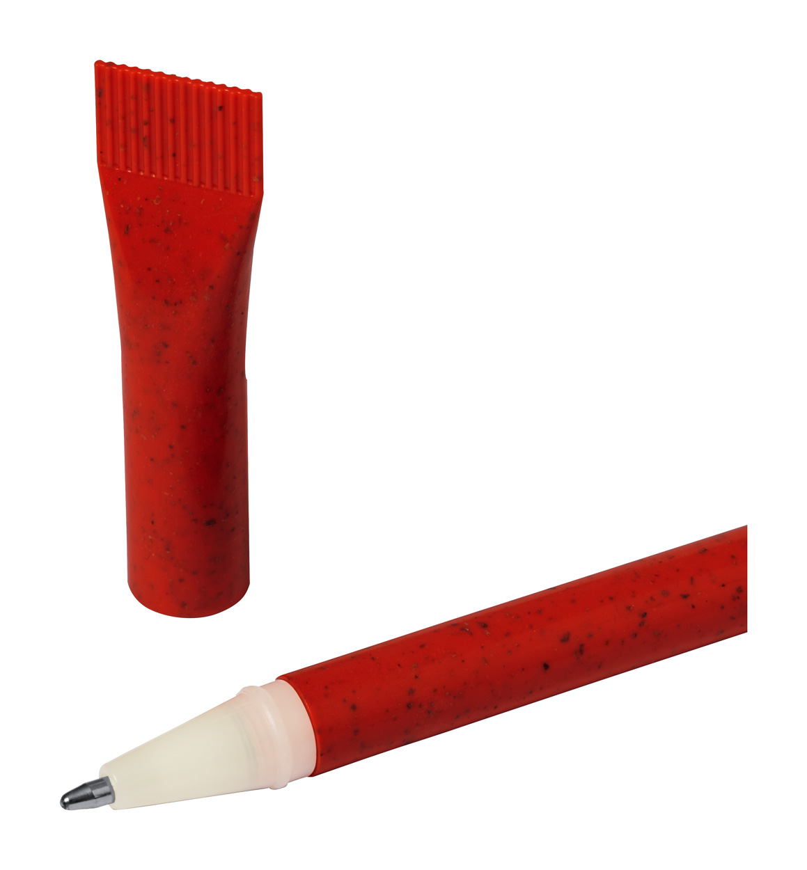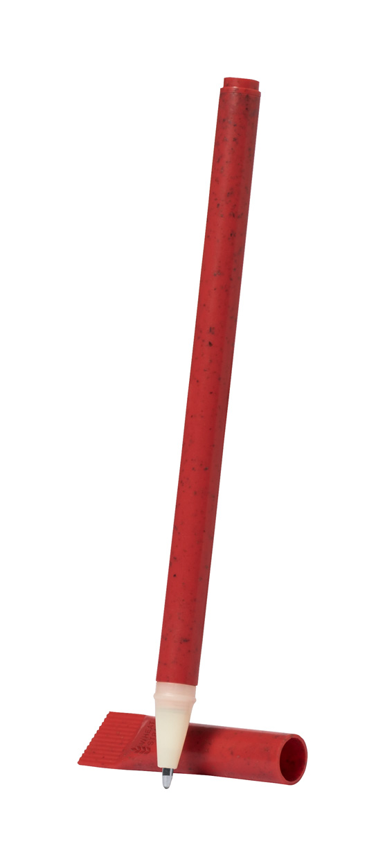 Plastové kuličkové pero z pšeničné slámy s uzávěrem a modrou náplní.