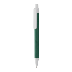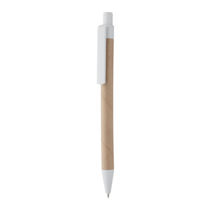 Kuličkové pero vyrobené z recyklovaného papíru a bílého plastu, s modrou náplní.
