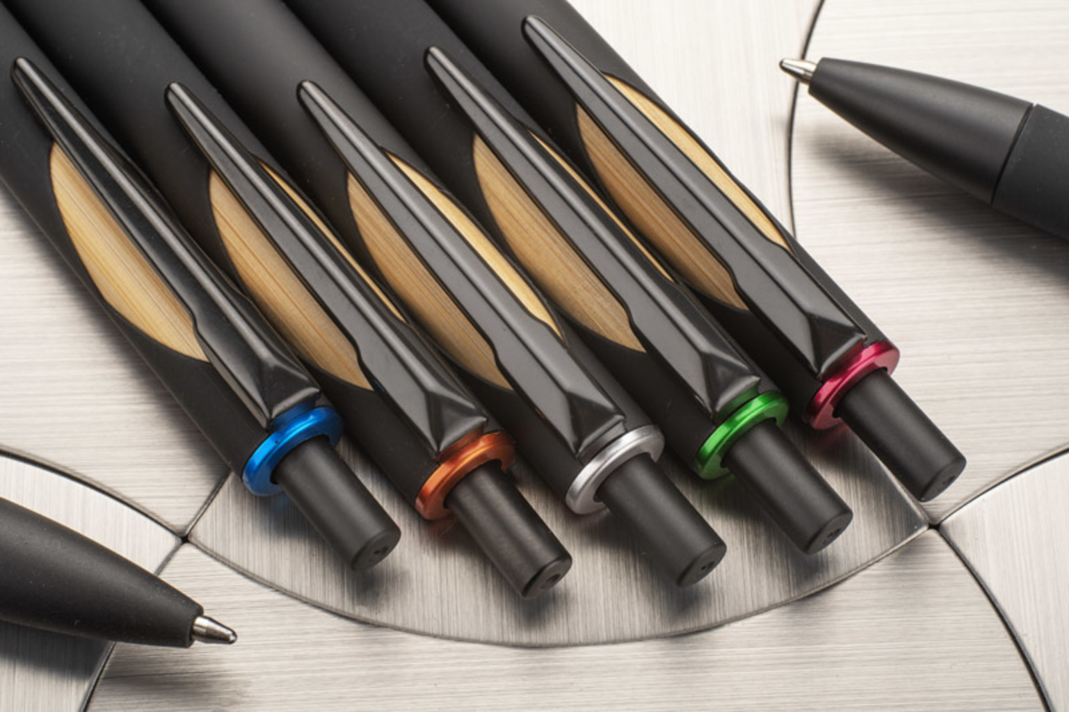 Pero FRANK má na dotek příjemný povrch. Bambusový prvek a kovová povrchová úprava dodávají peru elegantní a moderní vzhled.