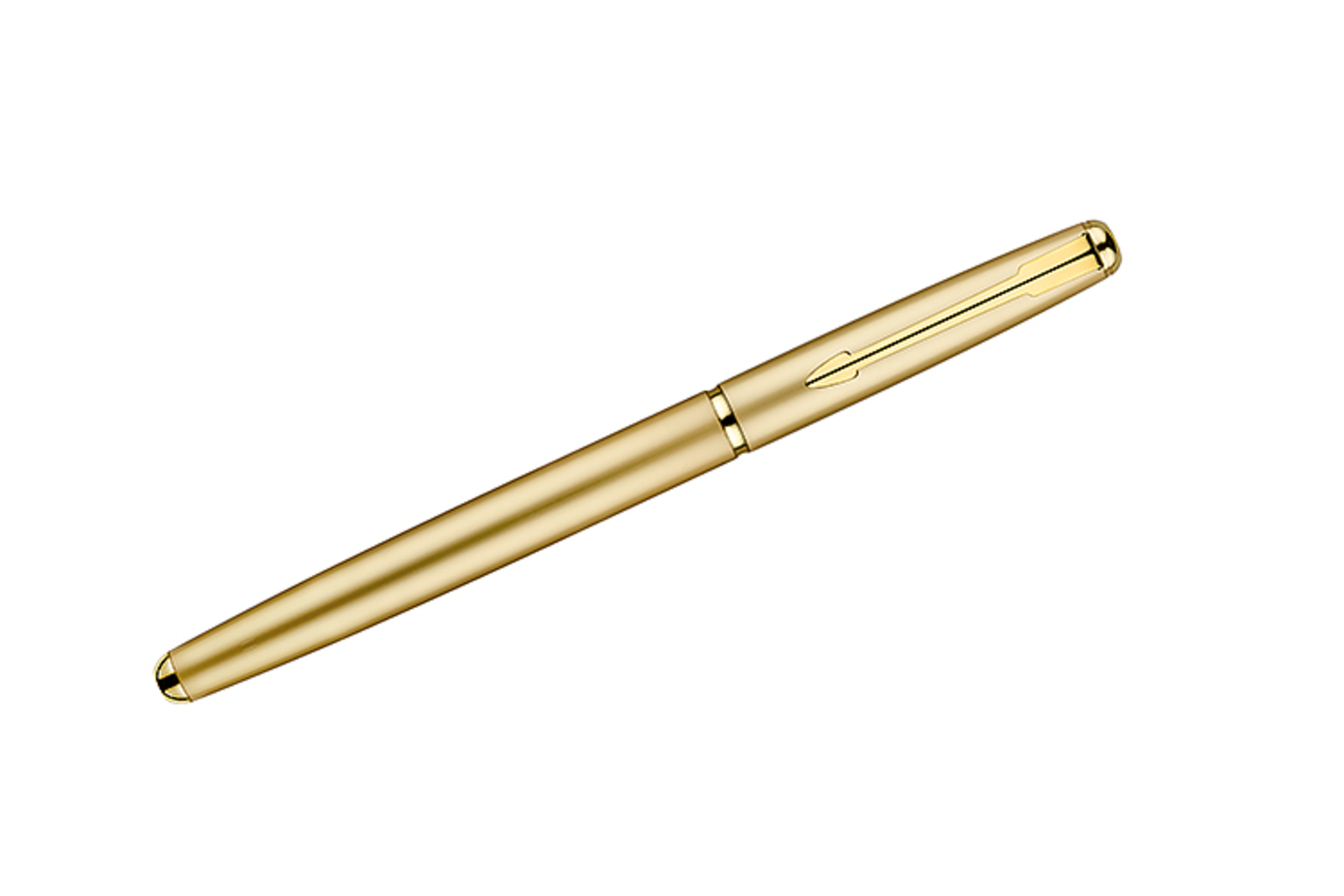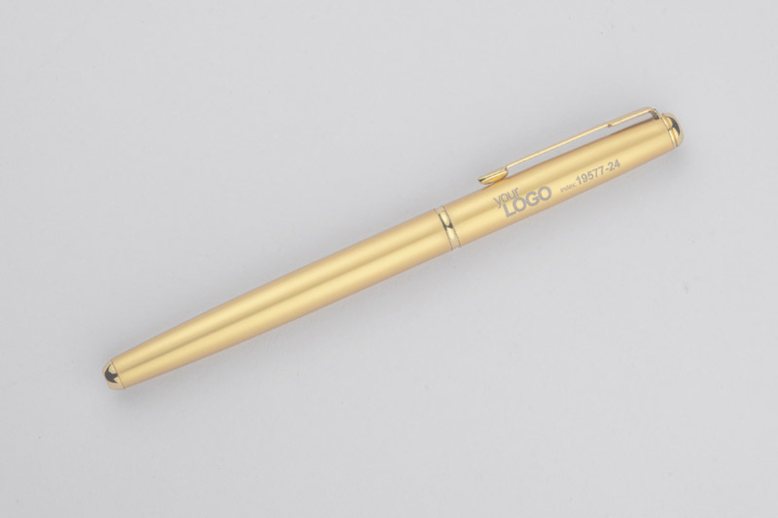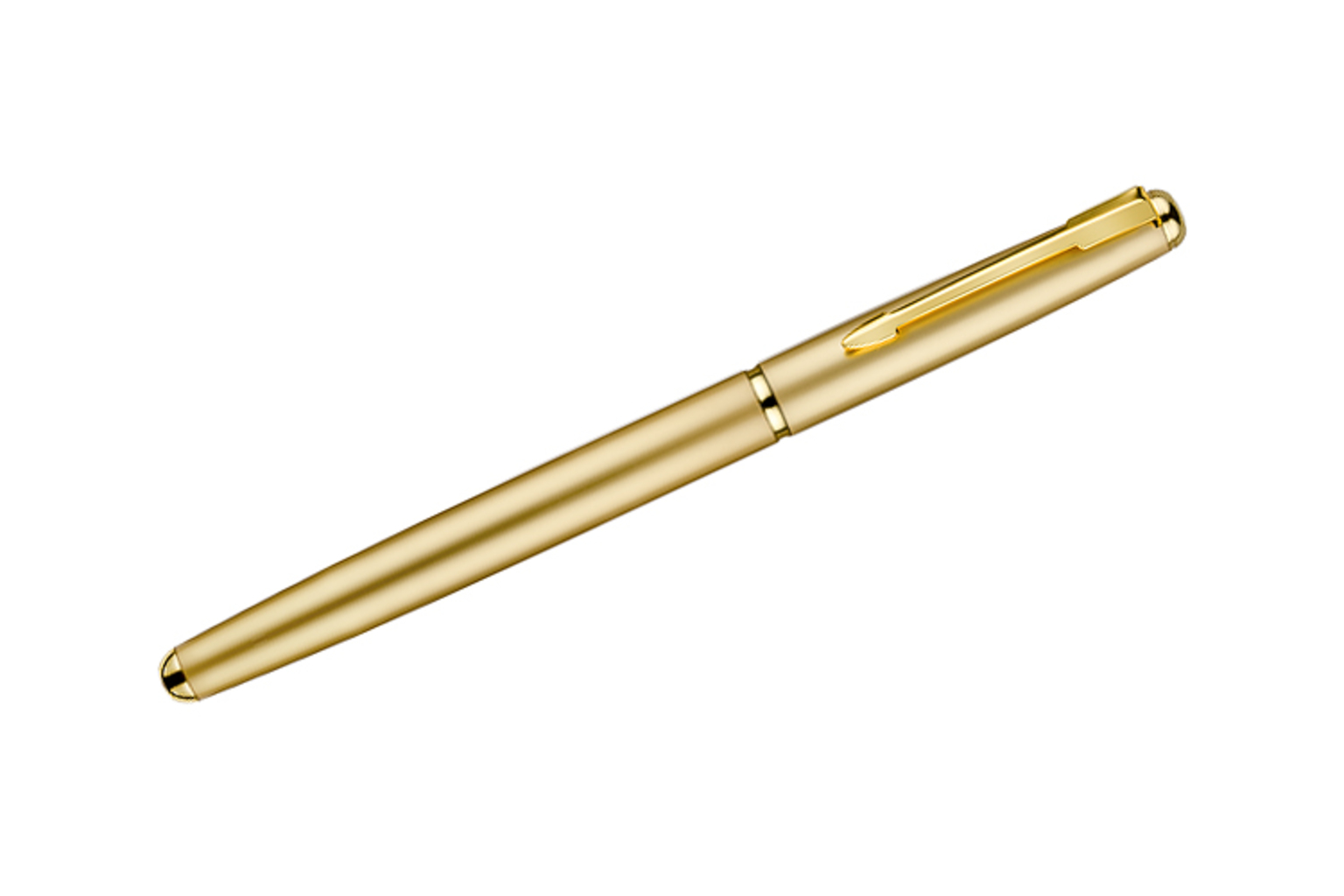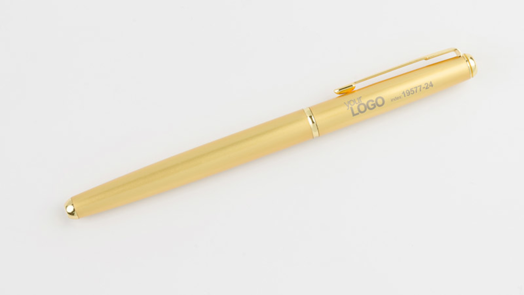 Kuličkové pero vyrobené z kovu se zlatým finišem. Klasický vzor zajišťuje nadčasovou eleganci.