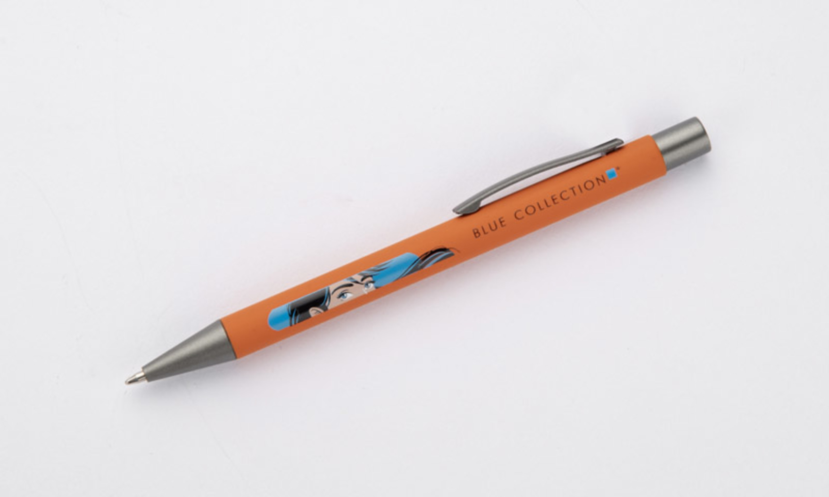 GOMA pen je jednoduchý design kombinovaný s gumovou povrchovou úpravou s příjemným pocitem. Celá kompozice je prezentována ve světlých, matných barvách. Vyrobeno z hliníku. Grafitový finiš. Modrá náplň.