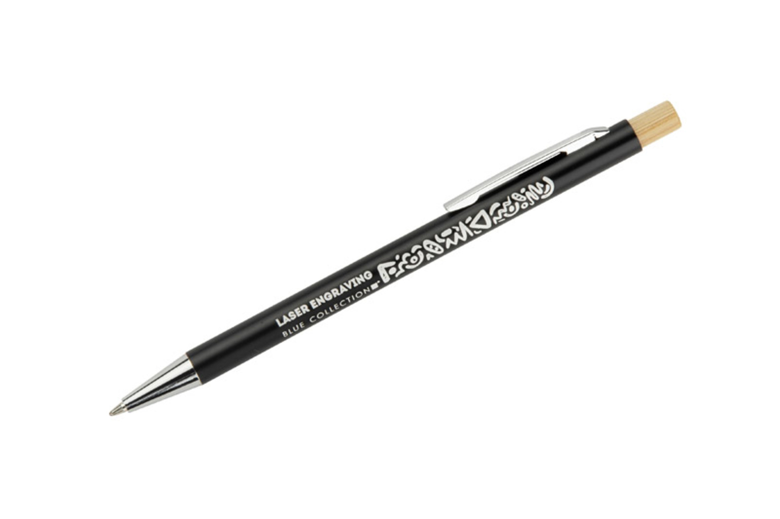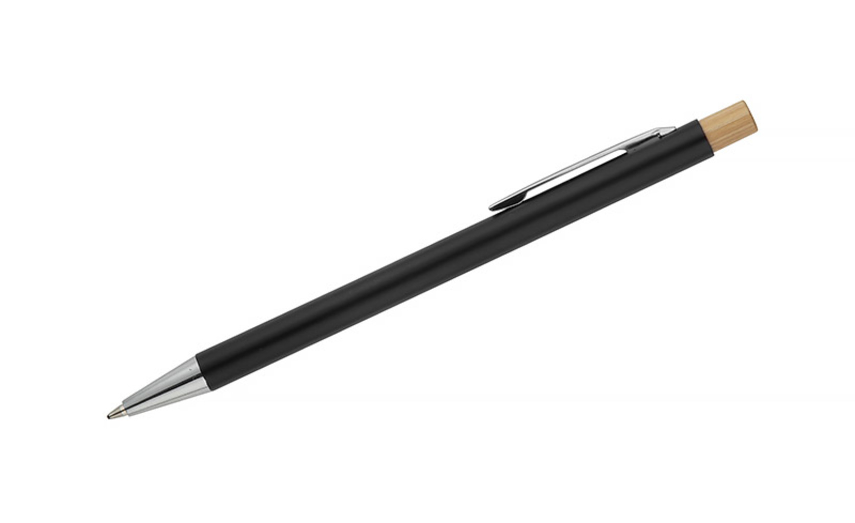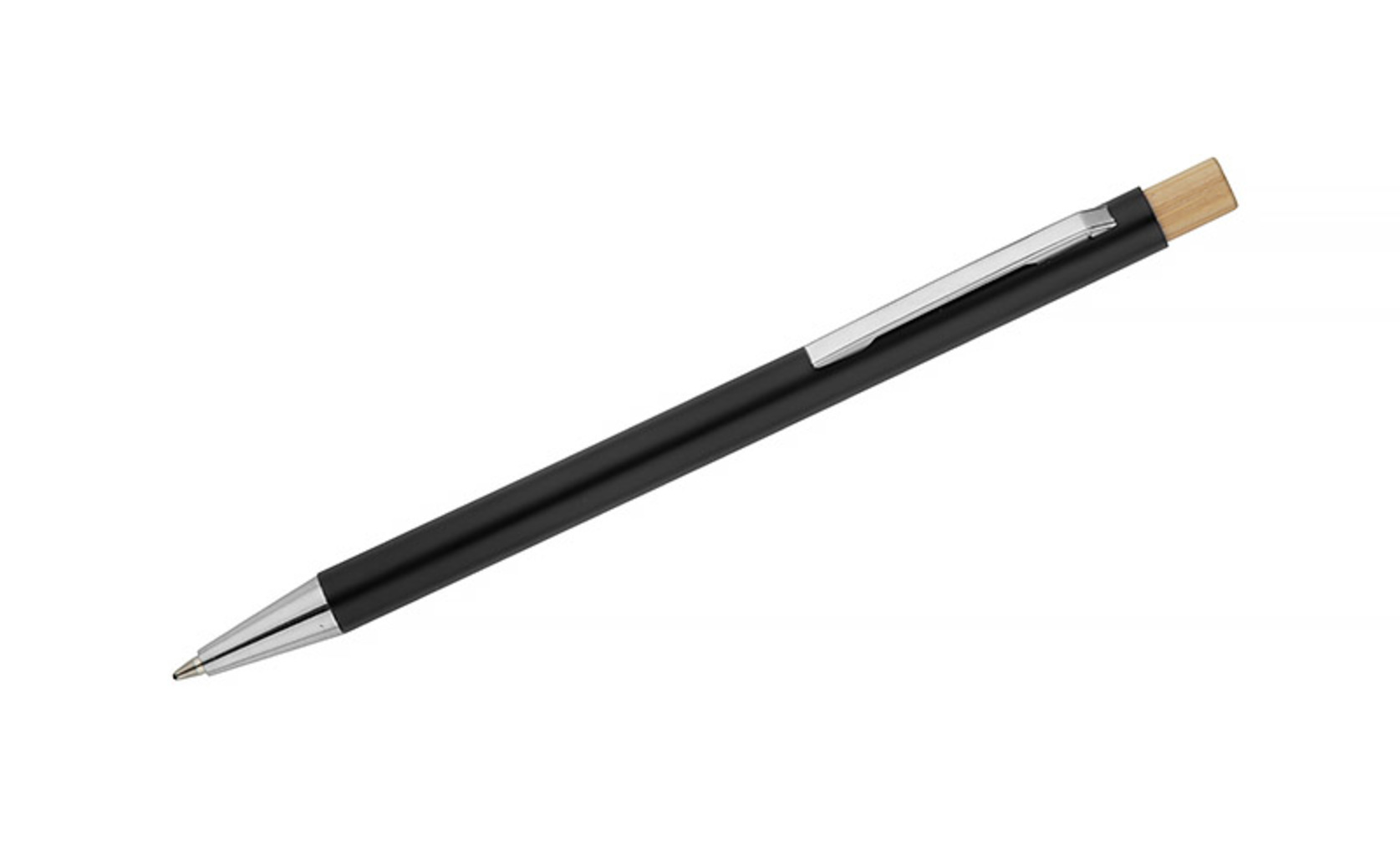 Kuličkové pero KIVO je tenký a lehký model se saténovým povrchem, který poskytuje výjimečný komfort při psaní. Jemný bambusový knoflík je přirozeným akcentem, který podtrhuje moderní charakter pera. Automatický mechanismus umožňuje pohodlné vysunutí hrotu typu X20 o tloušťce 1,0 mm, což zaručuje měkké a rovnoměrné psaní. KIVO je elegantní a funkční reklamní pomůcka, ideální pro každodenní použití v kanceláři nebo během jednání.