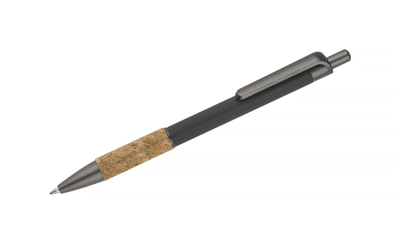 Pero KUMBO má klasický, jednoduchý tvar. Je vyrobeno z hliníku s příjemným pogumovaným povrchem. Rukojeť zakončená přírodním korkem zaručuje pohodlné uchopení. Povrchová úprava v barvě grafitu je vyrobena z plastu. Automatické pero. Modrá náplň X20.