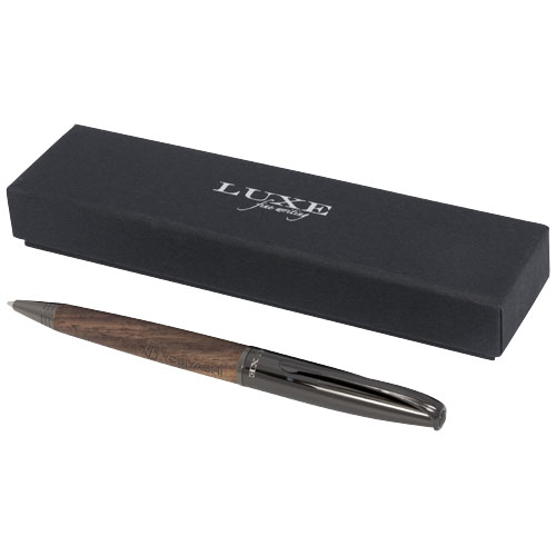 Kuličkové pero s otočným mechanismem s tělem s dřevěným vzhledem vyrobené z mosazi s chromováním, dodávané v dárkové krabičce Luxe. Kuličkové pero, velikost: 14,1 cm, 1,2 cm, hmotnost: 26 g, délka zápisu: 1500 m.