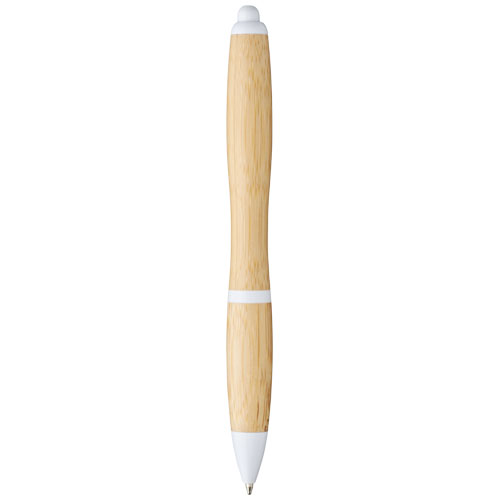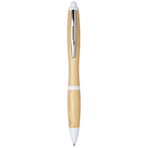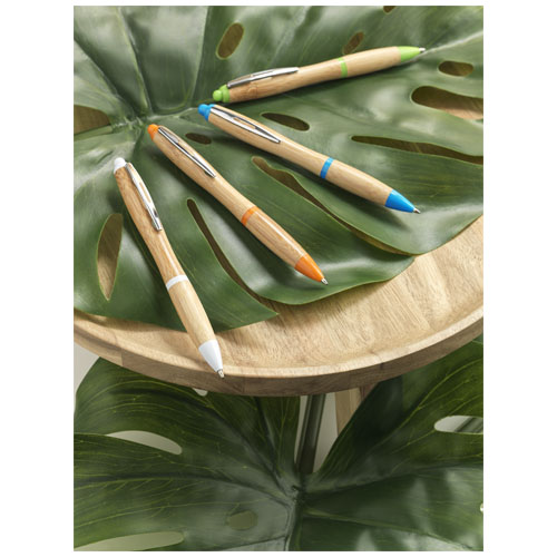 Ekologické kuličkové pero se stiskacím mechanismem, tělem vyrobeným z bambusu, s detaily z ABS plastu a chromovou sponou. Barva bambusového materiálu se může různit.
