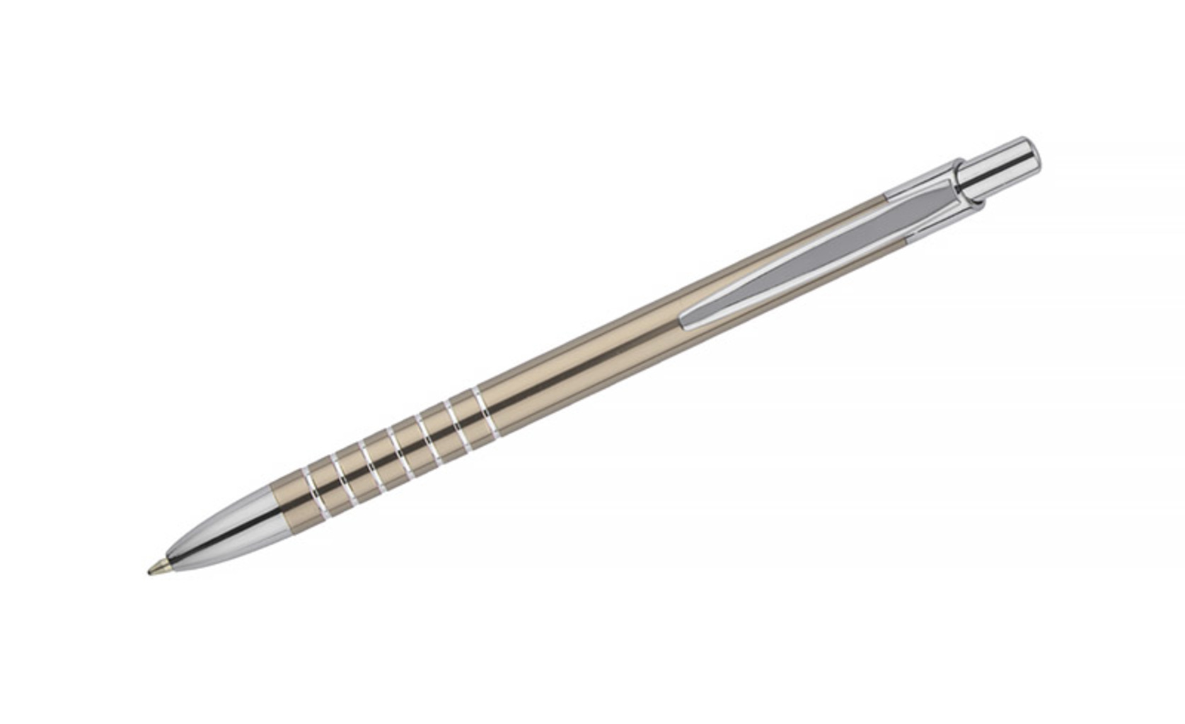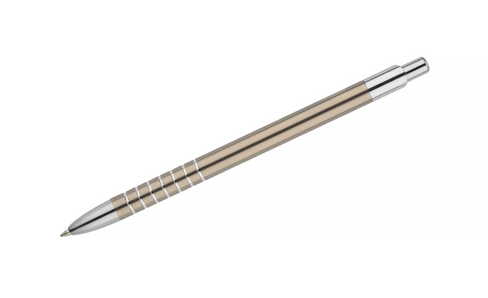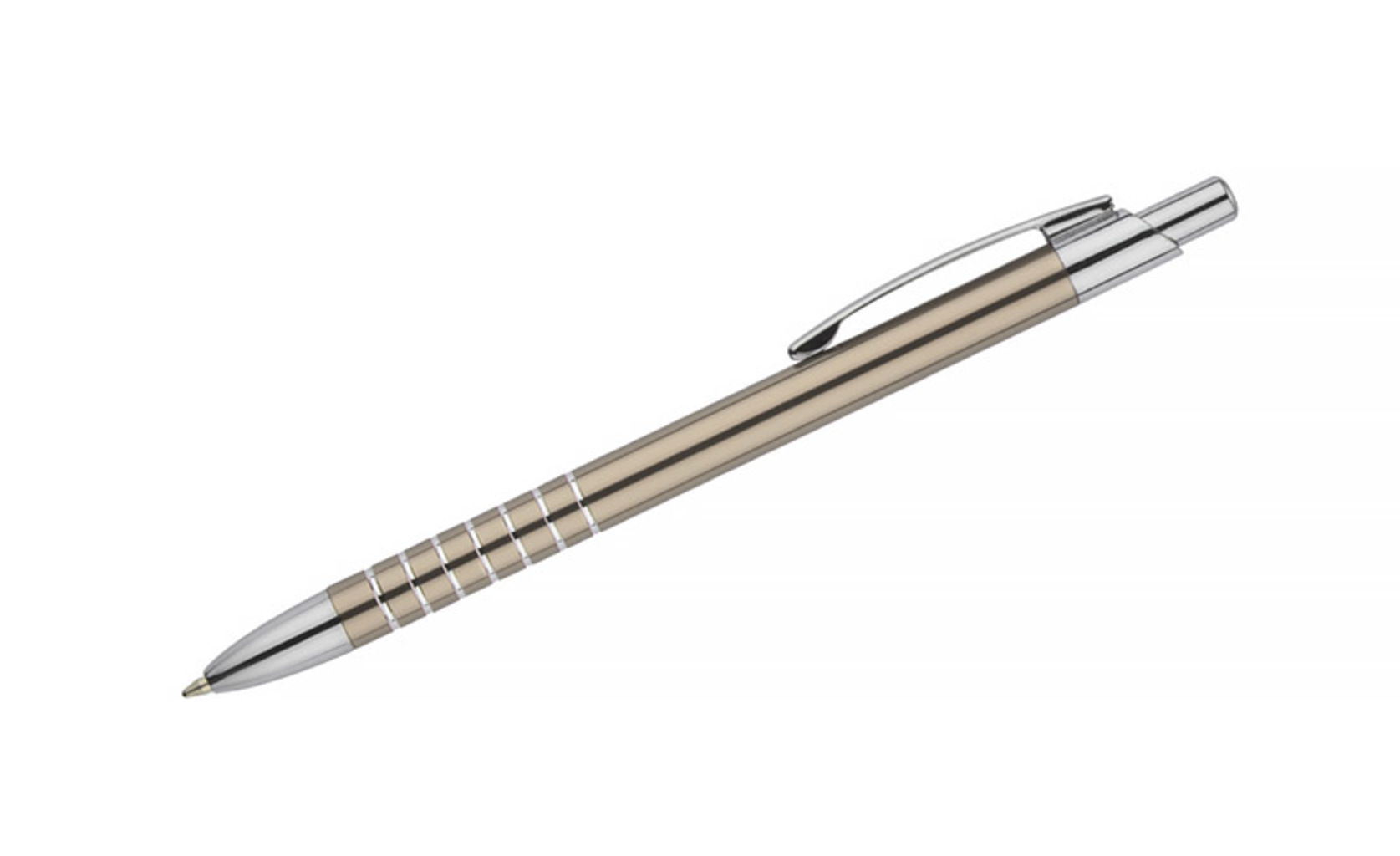 Prostá pero vyrobené z hliníku, ozdobené širokými prsteny. Logo bude vyryté.