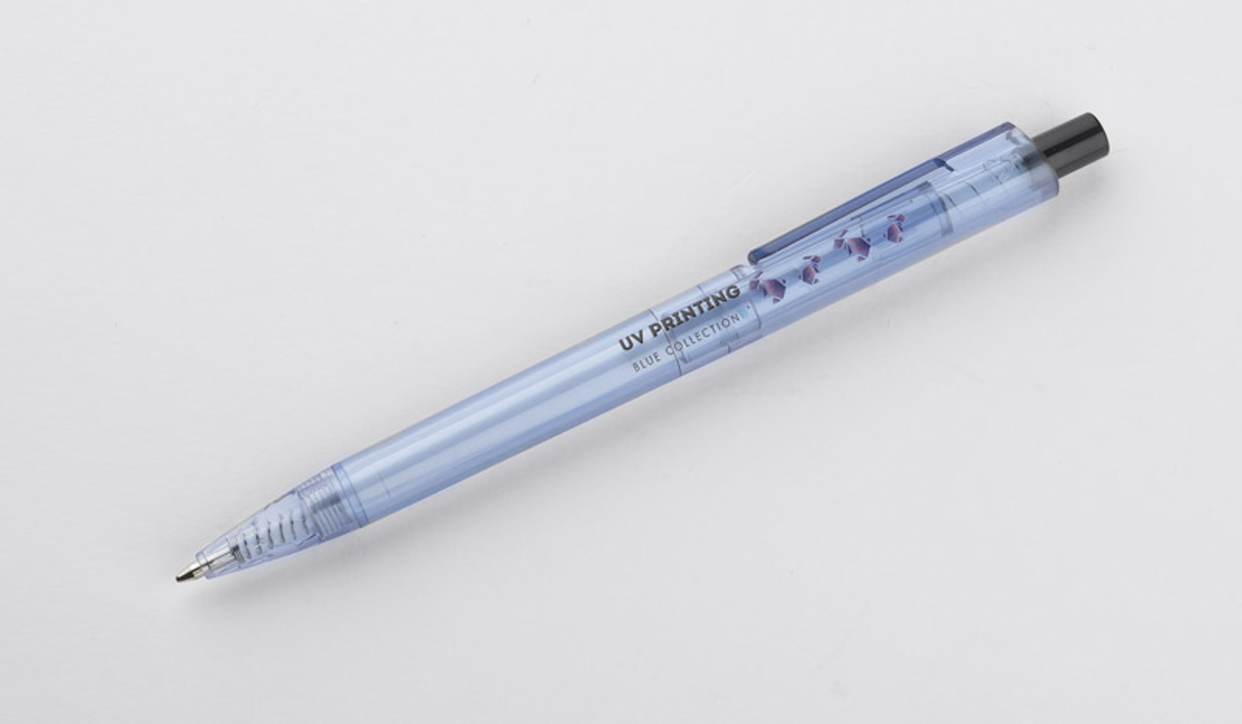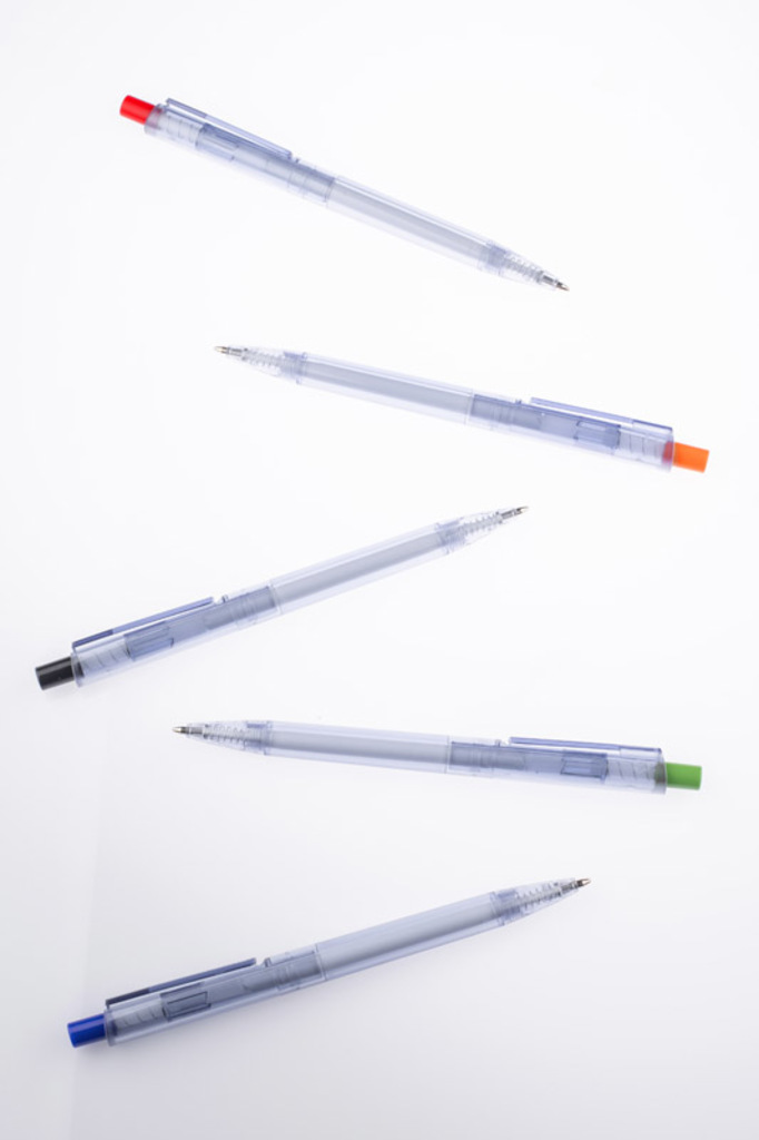 Pero RECYKLO vyrobené výhradně z rPET (recyklovaný PET) je odpovědí na hledání způsobů nakládání s plastovým odpadem. Průhledné modré tělo připomíná láhev s vodou, ze které bylo vyrobeno. Automatické kuličkové pero, modrá náplň typ G2.