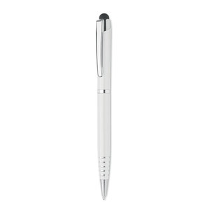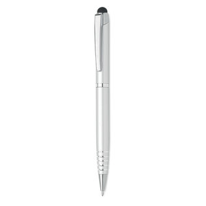 Otočné kuličkové pero z recyklovaného hliníku se stylusem. Modrý inkoust.