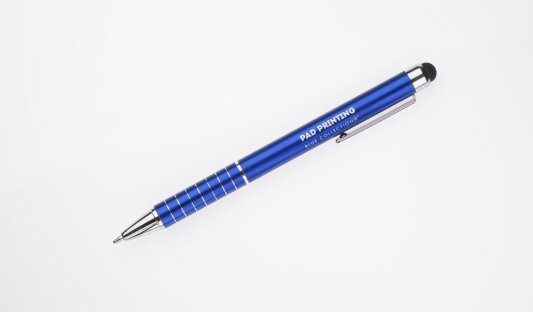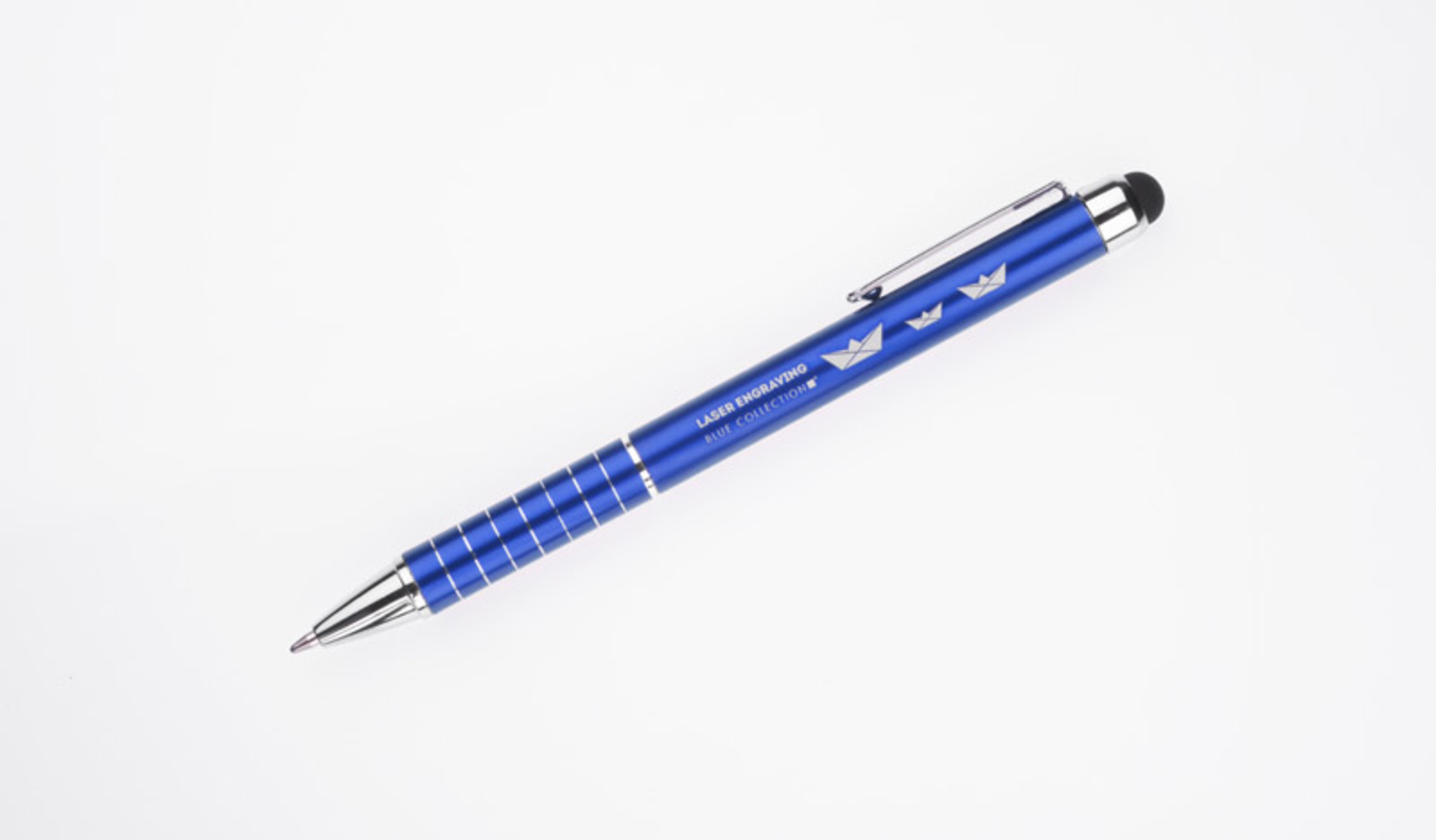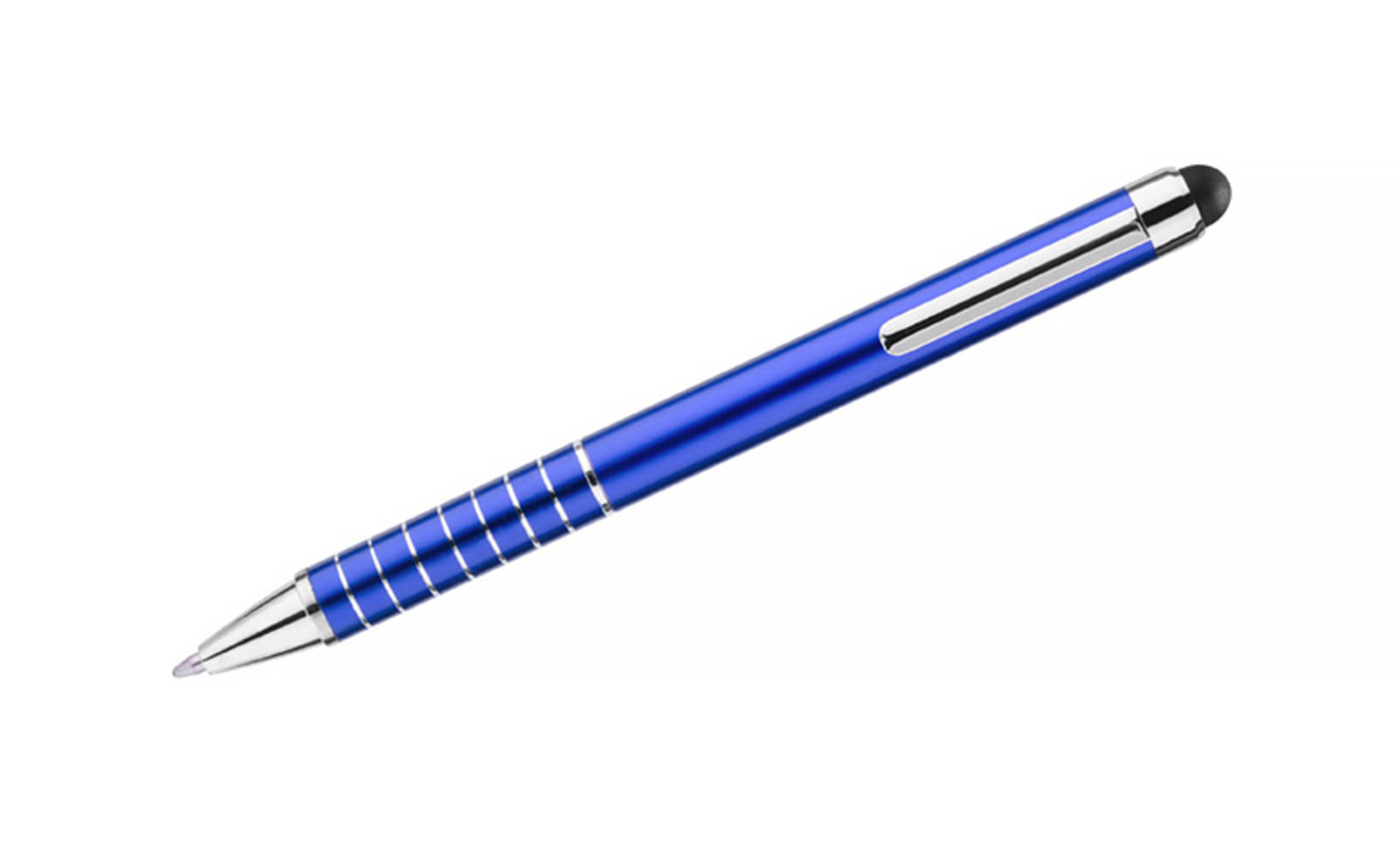 Jeden dotykowy i jeden piórka. To ułatwia pracę na tabletach i smartfonach. Wkład - niebieski. Logo może być wygrawerowane na piórku.