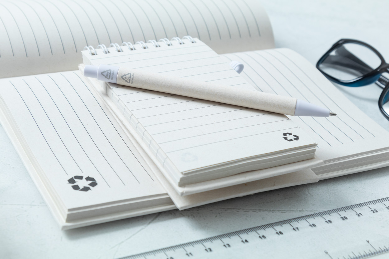 Kuličkové pero z recyklovaného kartonu na mléko s díly z recyklovaného ABS plastu. S modrou náplní.
