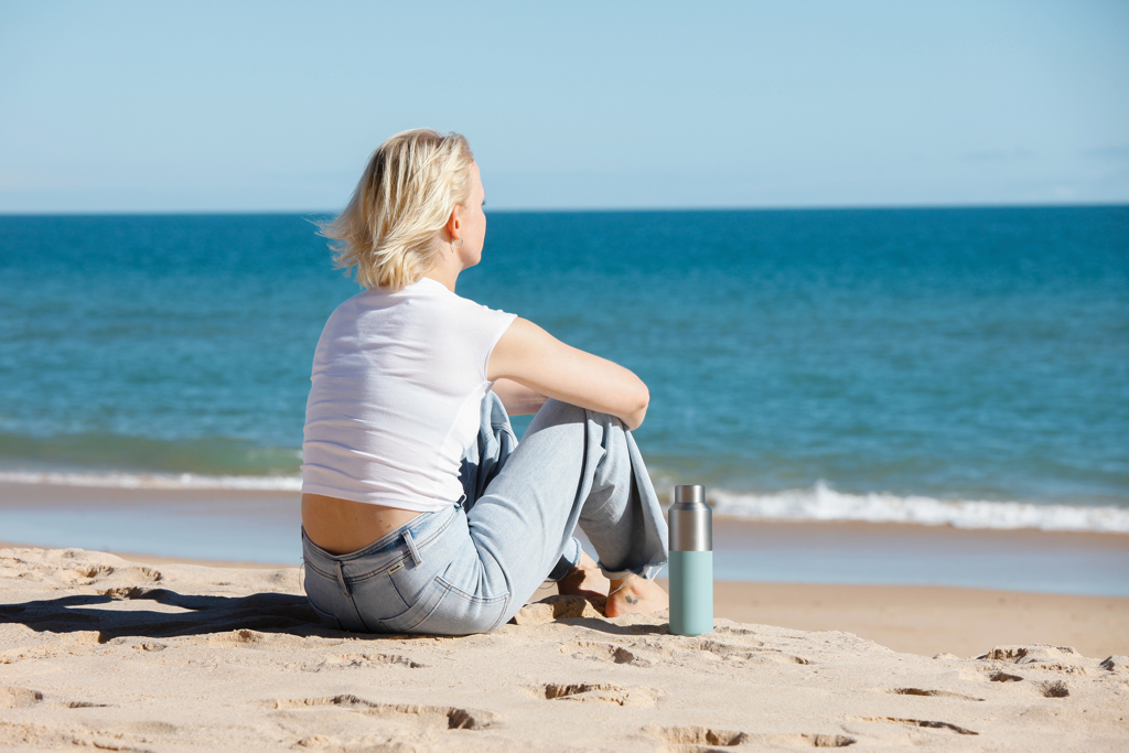 Tato 600ml láhev na vodu se vyznačuje jedinečným dvoubarevným stylovým designem. Dvoustěnná vakuová láhev z recyklované nerezové oceli udrží nápoje chlazené až 15 hodin nebo teplé až 5 hodin. Láhev na vodu se vejde do většiny standardních držáků na nápoje v autě. Vyrobena z certifikovaných recyklovaných materiálů podle standardu RCS (Recycled Claim Standard), což zajišťuje plně certifikovaný dodavatelský řetězec recyklovaných materiálů. Recyklovaný obsah dle celkové váhy produktu: 95 %. Bez BPA. Zahrnuje dárkové balení z kraftového papíru s certifikací FSC®.