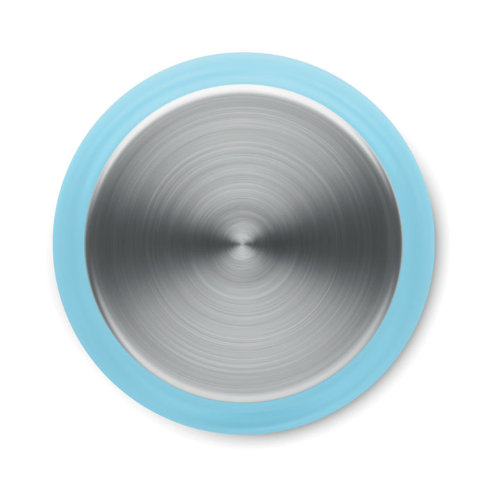 Láhev na pití z RPET s pogumovanou povrchovou úpravou a víčkem z nerezové ocele se silikonovým kroužkem. Bez BPA. Objem: 600 ml. Nevhodné pro sycené nápoje.