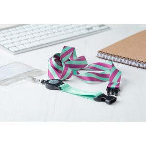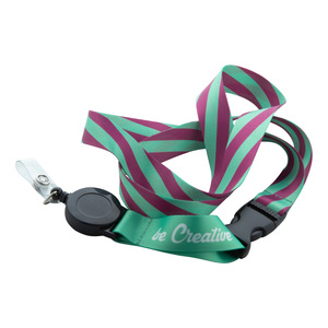 Polyesterový, široký lanyard na zakázku s oddělitelným teleskopickým připínákem. Cena zahrnuje sublimační potisk na obou stranách, nezahrnuje tiskovou přípravu. Min. mn.: 100 ks.