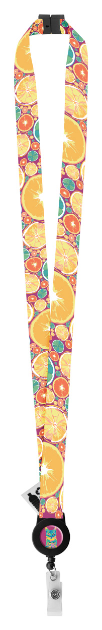 RPET lanyard na zakázku s teleskopickým připínákem a bezpečnostní přezkou. Cena zahrnuje sublimační potisk na obou stranách, nezahrnuje tiskovou přípravu. Min. mn.: 100 ks.