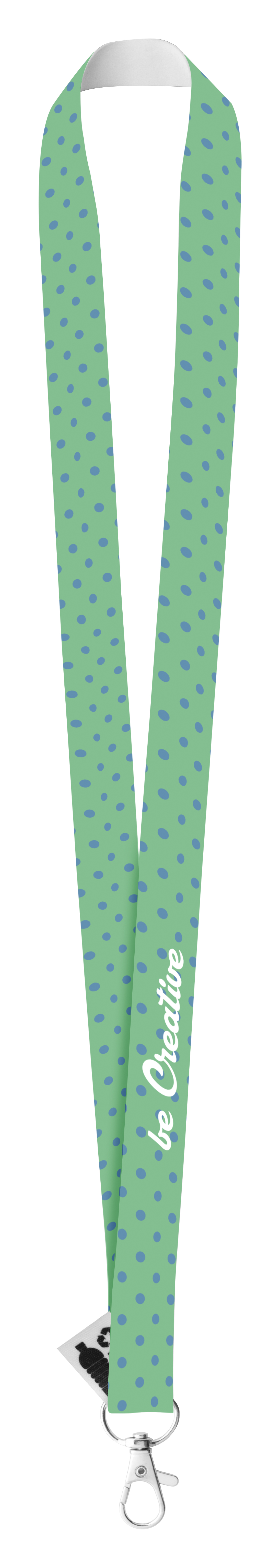 RPET lanyard na zakázku s kovovou karabinkou. Cena zahrnuje sublimační potisk na jedné straně, nezahrnuje tiskovou přípravu. Min. mn.: 100 ks.