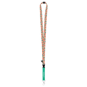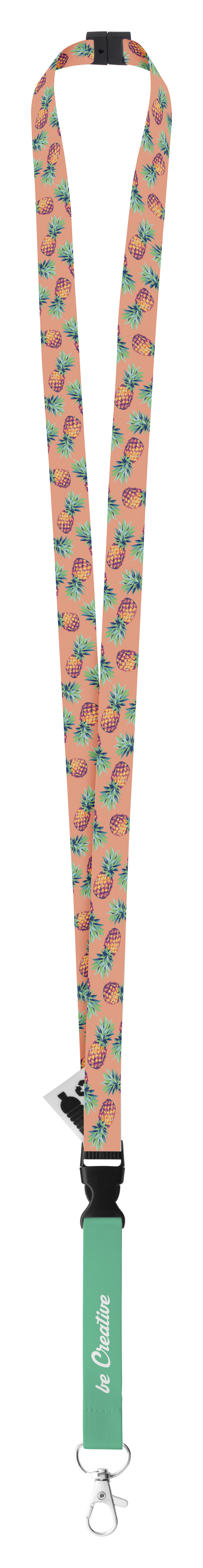 RPET lanyard 15 mm na zakázku s odepínací kovovou karabinkou a bezpečnostní přezkou. Cena zahrnuje sublimační potisk na obou stranách, nezahrnuje tiskovou přípravu. Min. mn.: 100 ks.