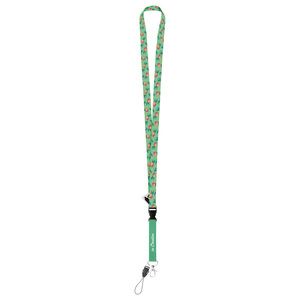 RPET lanyard 15 mm na zakázku s odepínací kovovou karabinkou a šňůrkou na mobil. Cena zahrnuje sublimační potisk na obou stranách, nezahrnuje tiskovou přípravu. Min. mn.: 100 ks.