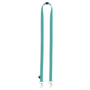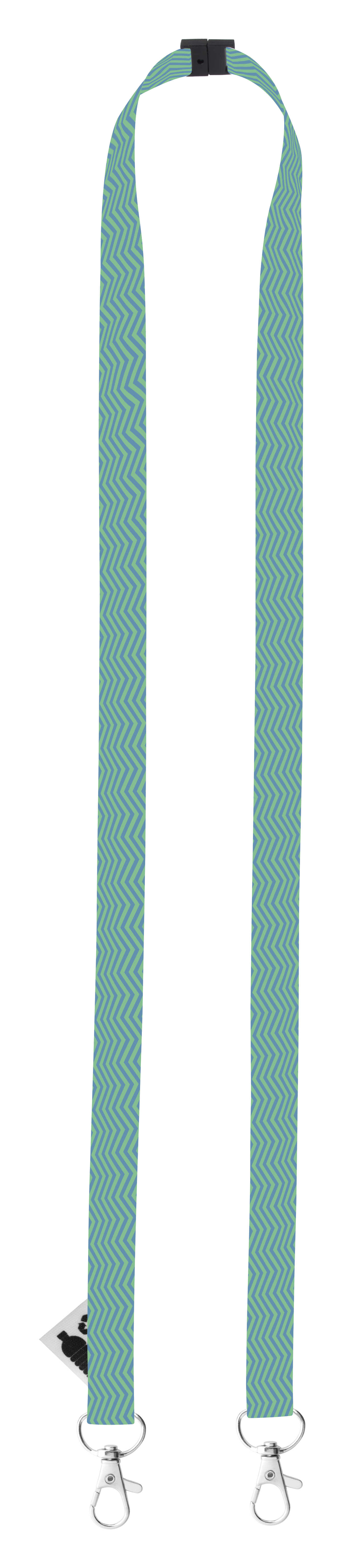 RPET lanyard 15 mm na zakázku se 2 kovovými karabinkami a bezpečnostní přezkou. Cena zahrnuje sublimační potisk na obou stranách, nezahrnuje tiskovou přípravu. Min. mn.: 100 ks.