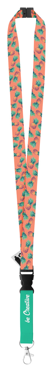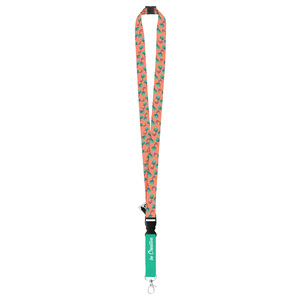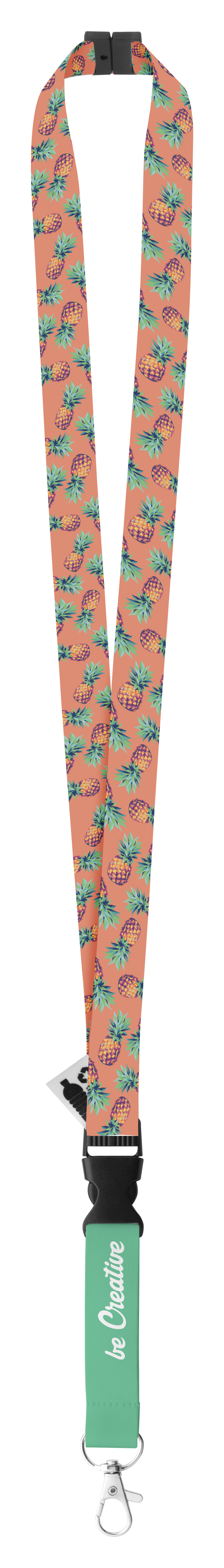 RPET lanyard na zakázku s odepínací kovovou karabinkou a bezpečnostní přezkou. Cena zahrnuje sublimační potisk na obou stranách, nezahrnuje tiskovou přípravu. Min. mn.: 100 ks.