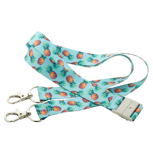 Polyesterový lanyard RPET na zakázku se 2 oddělitelými kovovými karabinkami a bezpečnostní přezkou z pšeničné slámy, se sublimačním potiskem na obou stranách. Cena zahrnuje sublimační potisk, nezahrnuje tiskovou přípravu. Min. mn.: 100 ks.