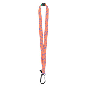 Na zakázku vyrobený RPET lanyard s velkou karabinou z recyklovaného hliníku a bezpečnostní přezkou. Se sublimační tištěnou grafikou na obou stranách,cena nezahrnuje tiskovou přípravu. Min. mn.: 100 ks.