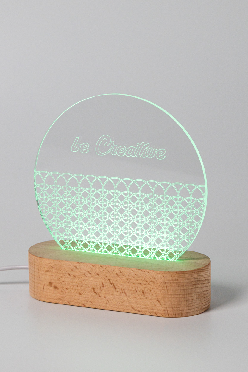Akrylová trofej na zakázku na dřevěném podstavci s vícebarevným LED světlem napájeným přes USB. V unikátním tvaru s gravírovanou grafikou. S USB nabíjecím kabelem. Cena včetně gravírování, cena nezahrnuje tiskovou přípravu. Min. mn.: 25 ks.