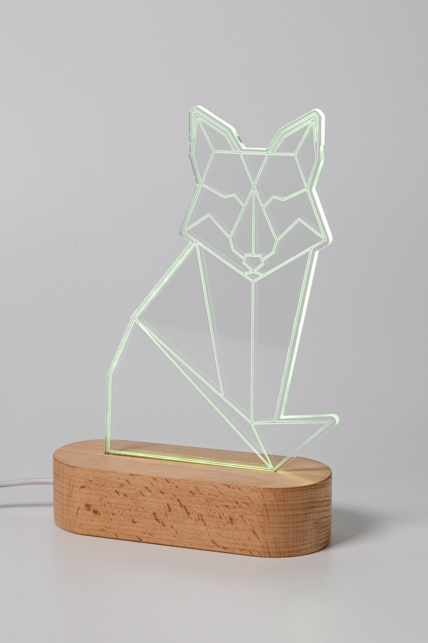 Akrylová trofej na zakázku na dřevěném podstavci s vícebarevným LED světlem napájeným přes USB. V unikátním tvaru s gravírovanou grafikou. S USB nabíjecím kabelem. Cena včetně gravírování, cena nezahrnuje tiskovou přípravu. Min. mn.: 25 ks.
