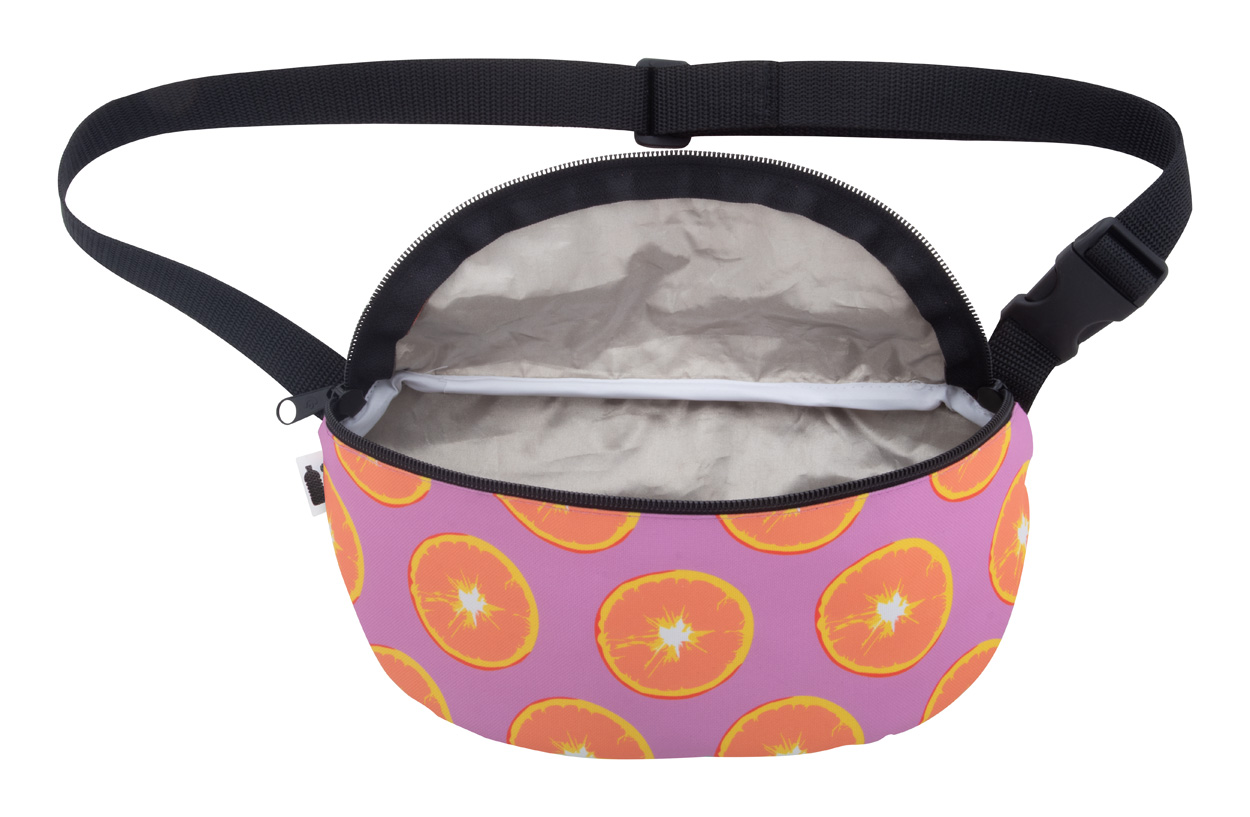 Ledvinka RPET na zakázku s přihrádkou na zip a kapsou chráněnou RFID, polyester 600D RPET. Cena zahrnuje celoplošně sublimačně potištěnou grafiku, nezahrnuje tiskovou přípravu. Min. mn: 50 ks.