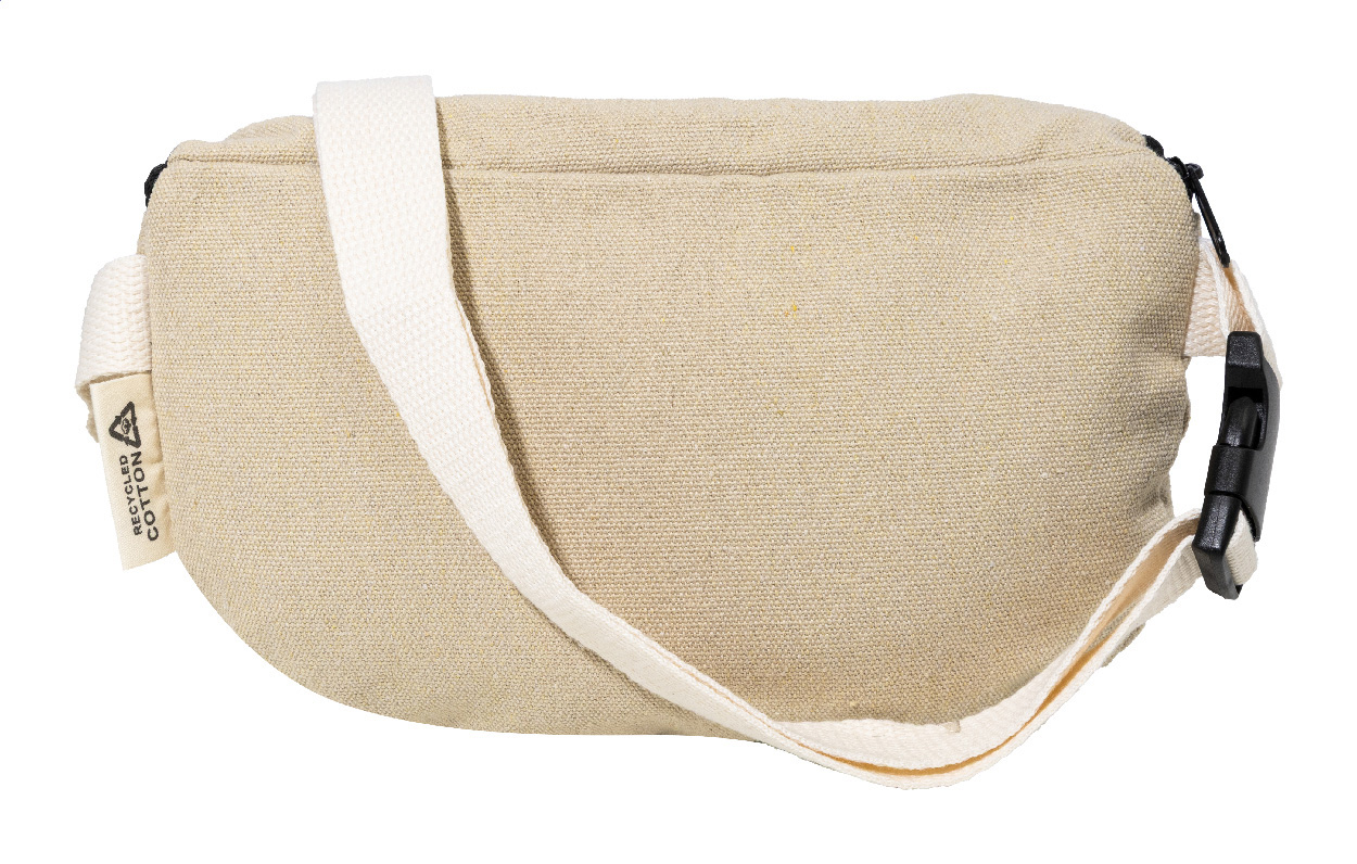 Ledvinka z recyklovaného plátna s přihrádkou na zip a nastavitelným popruhem. 70 % recyklované bavlny a 30 % recyklovaného polyesteru. S výraznou etiketou z recyklované bavlny.